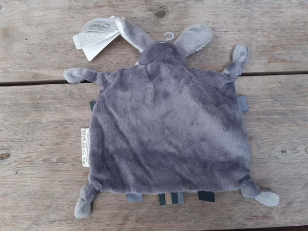 Een knuffeldoek hondje waar ook nog de zeer geliefde labeltjes aanzitten.