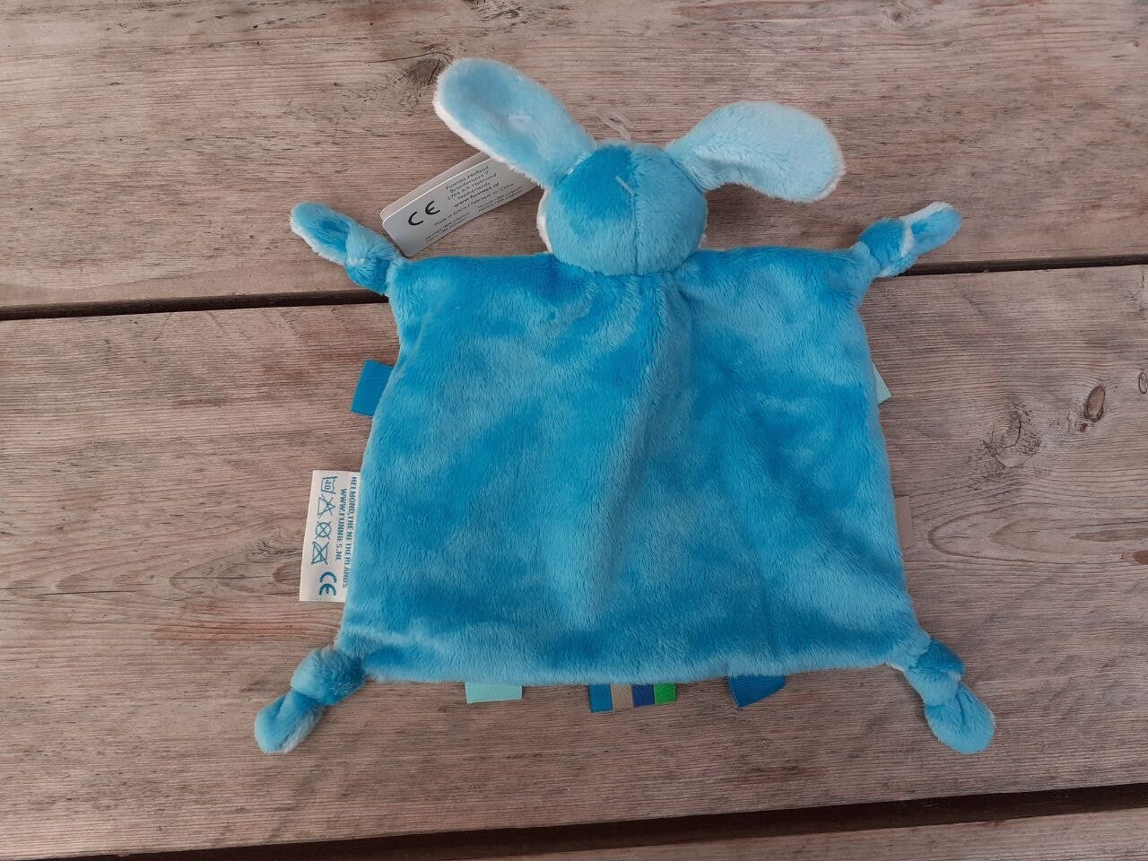 Een knuffeldoek hondje waar ook nog de zeer geliefde labeltjes aanzitten.